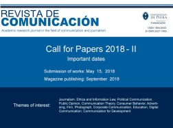 Call for papers has been announced for the September issue of the Revista de Comunicación. The journal accepts entries written in English as well as in Spanish. The deadline for submission is May 15th 2018.