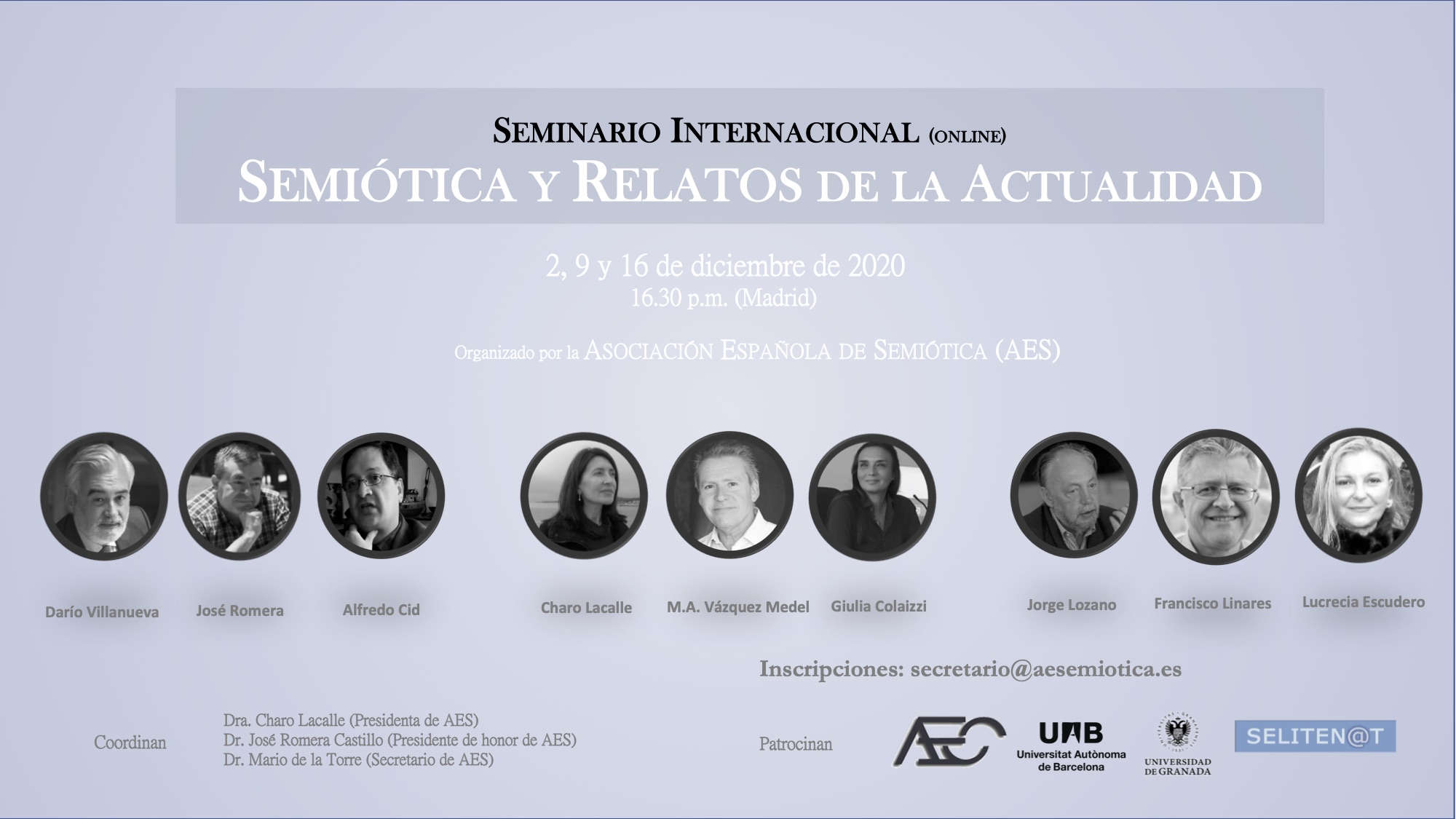 Con el objetivo de abordar diferentes temáticas desde unos posicionamientos semióticos rigurosos, la AES organiza el Seminario Internacional Semiótica y relatos de la actualidad, contando para ello con un plantel académico de primer nivel que tratará en tres mesas redondas aspectos como la pandemia, el género o la actualidad de la disciplina.