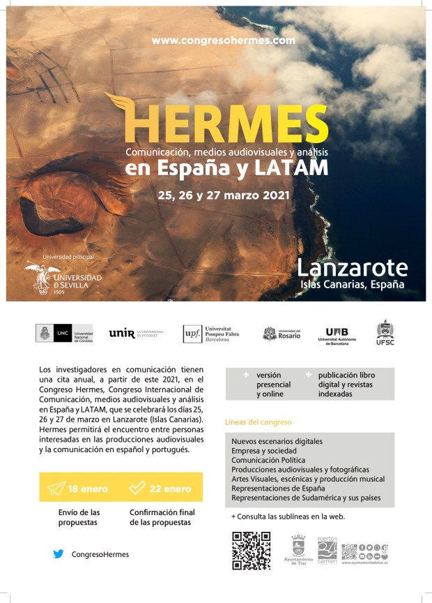 El Congreso Hermes, Congreso Internacional de Comunicación, medios audiovisuales y análisis en España y LATAM, se celebrará los días 25, 26 y 27 de marzo en Lanzarote (Islas Canarias).